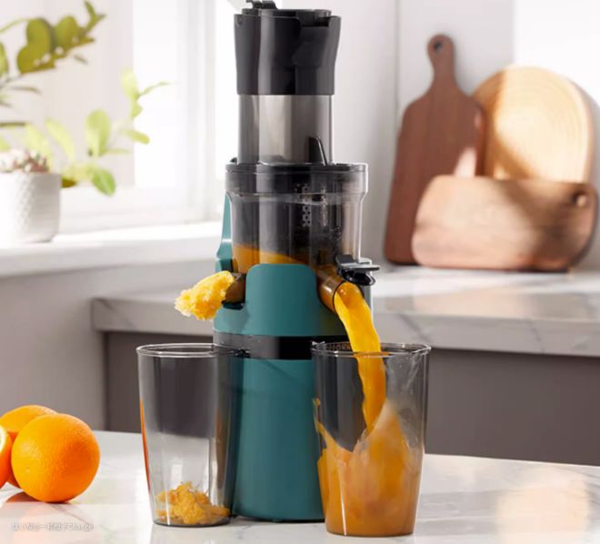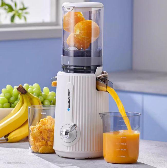 功能就比较单一了,它只能榨果汁或者蔬菜汁。转速在每分钟千转左右,果汁从一个口出来,果渣从另一个口收集,部分营养会随着果渣流失,果汁口感也远远比不上原汁机。只能加工比软的食材,例如各种水果、蔬菜。而对比较硬的食材就不行了,比如豆类、坚果等,就不能用榨汁机来打了,功能比较局限。不过噪音较小,价格实惠
