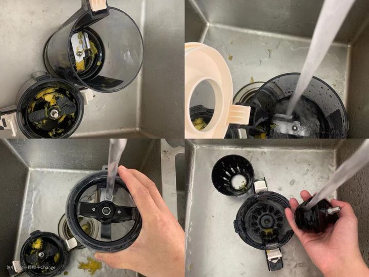 蓝宝的清洗上面是非常方便的,蓝宝原汁机的所有部件是可以拆卸的,非传统原汁机那种的“水管形”结构,直接对水一冲就可以解决了。