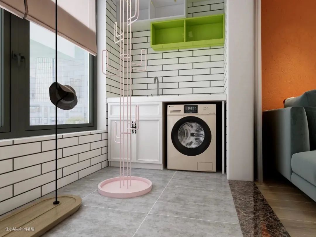 阳台处也有樱花粉和青草绿搭配,为普通的阳台增添了满满活力。