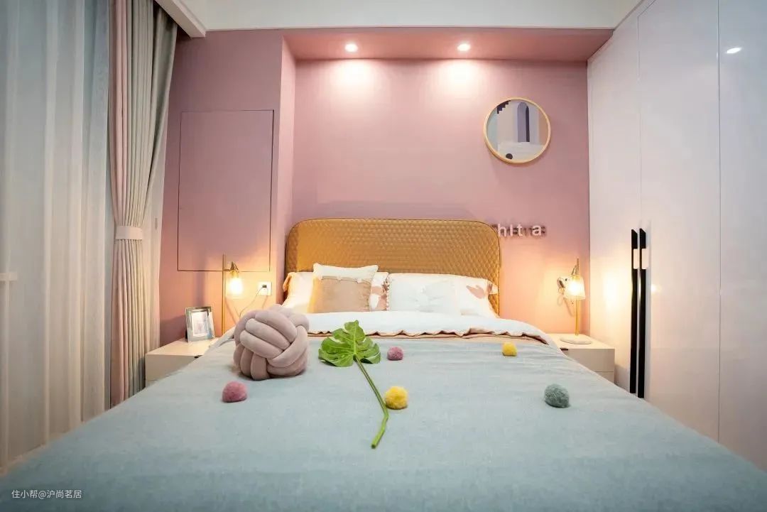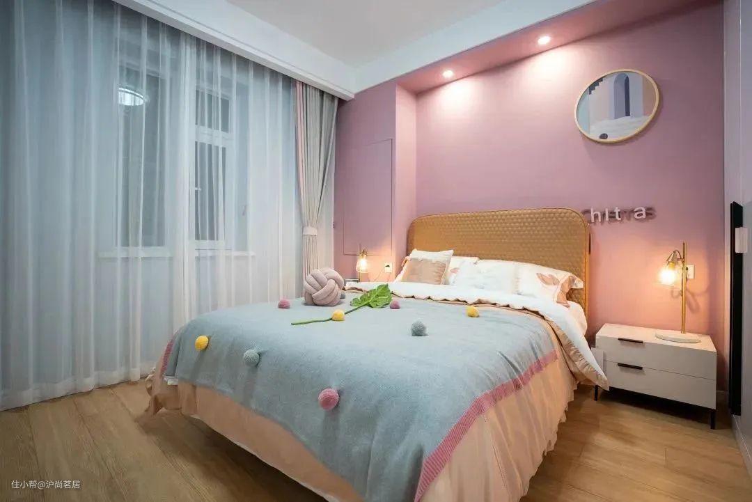 软萌的粉色与清凉的蓝相遇,粉色背景墙+灰蓝色床品,是梦幻的童年组合呀,哪个女孩没有一个浪漫的公主梦呢。