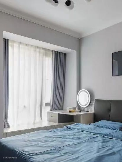 飘窗本身可以变成收纳型飘窗满足日常收纳需求,利用飘窗与墙面的转角空间,定制收纳柜或者梳妆台与飘窗进行一场梦幻联动,就可以实现飘窗收纳功能的延伸。