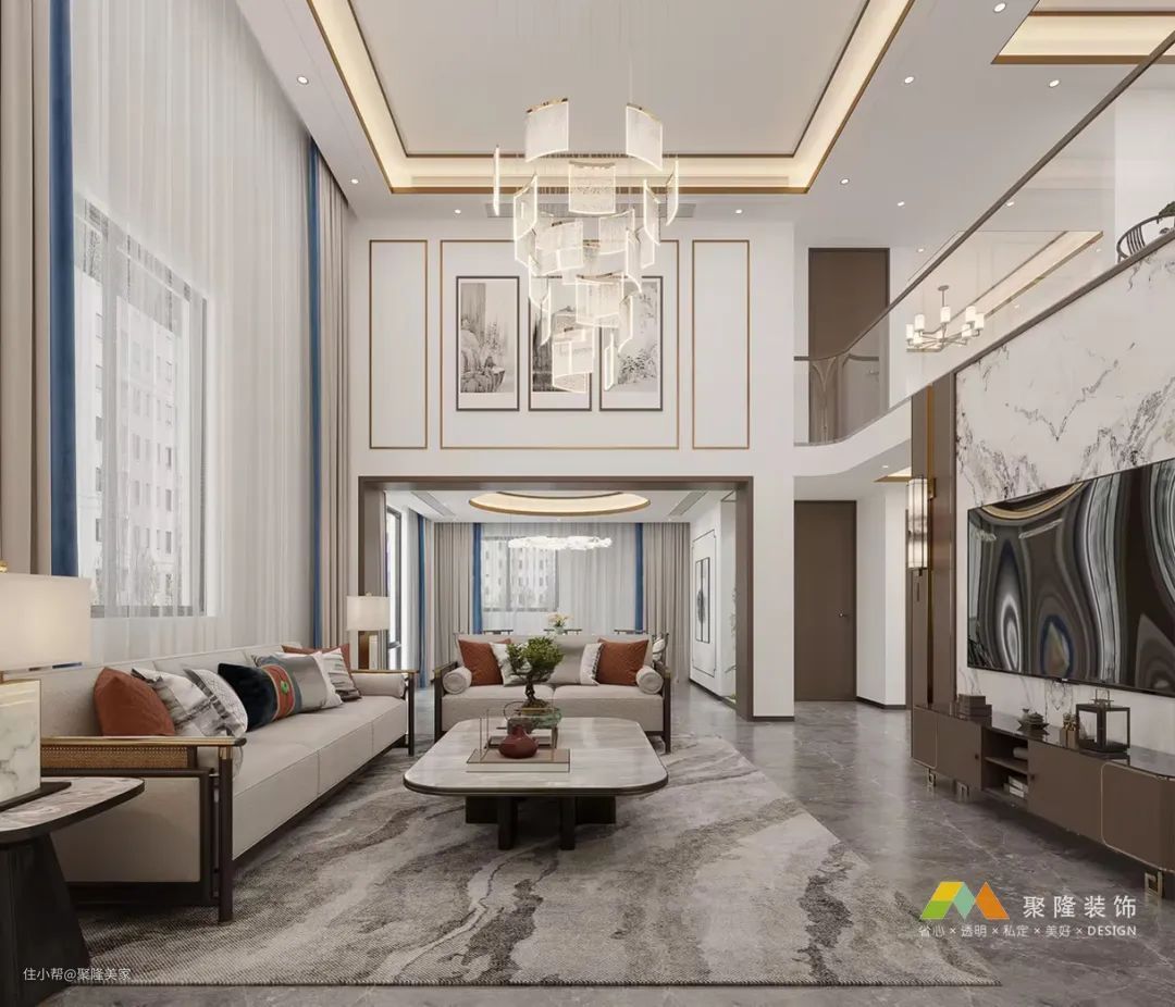 【全案案例】460㎡自建别墅,新中式+挑高客厅,精致典雅