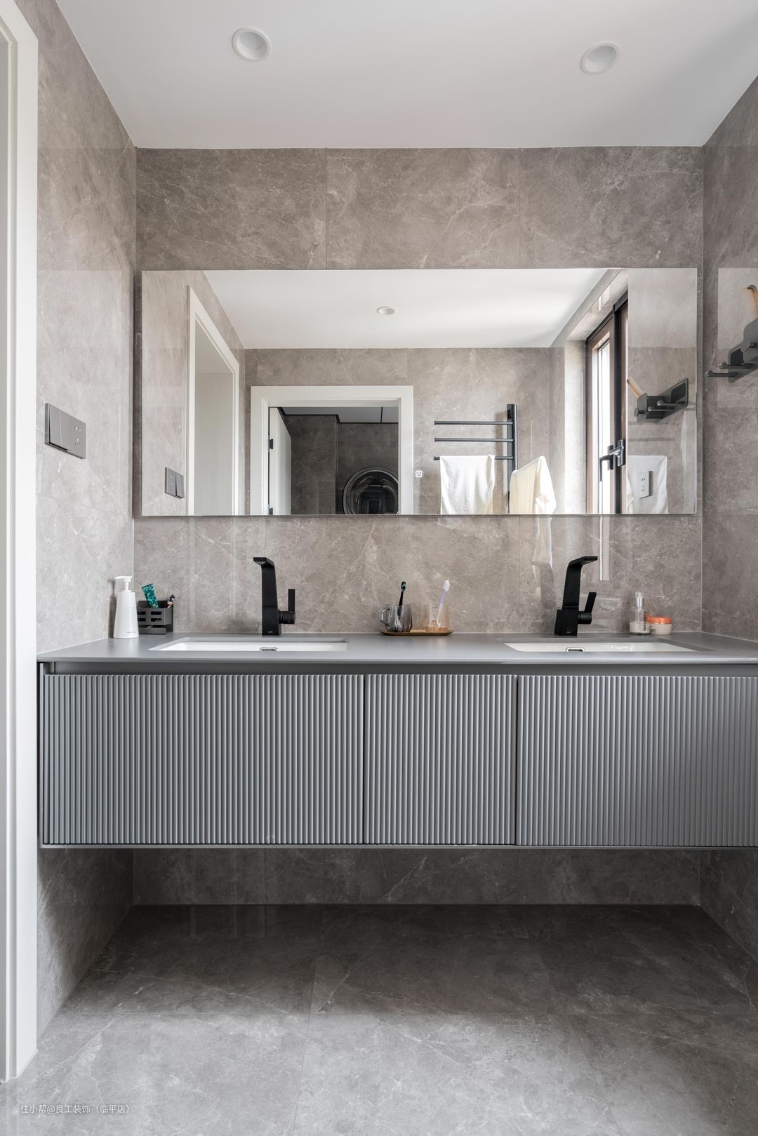 卫生间在遵循空间格局的基础上,规避了冗余的表现手法,用高级灰与米色系铺陈出内敛雅致的空间情绪,带来实用功能的同时,氤氲出舒压氛围。