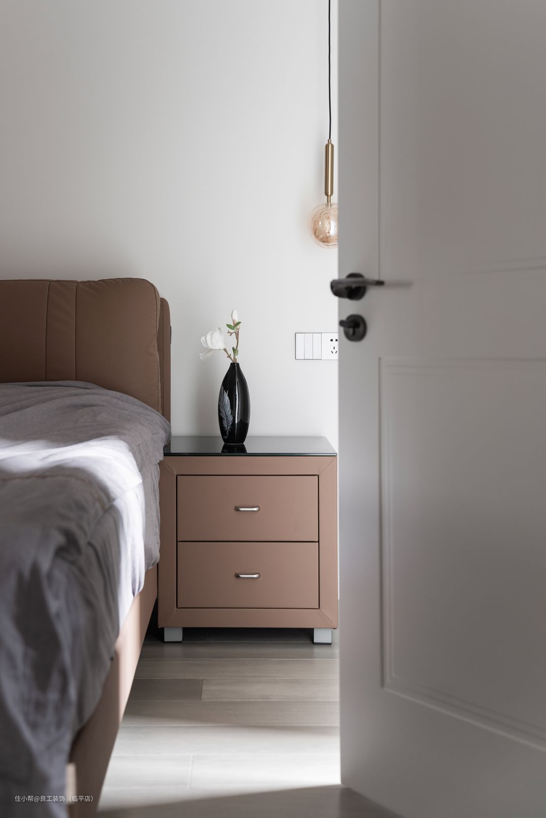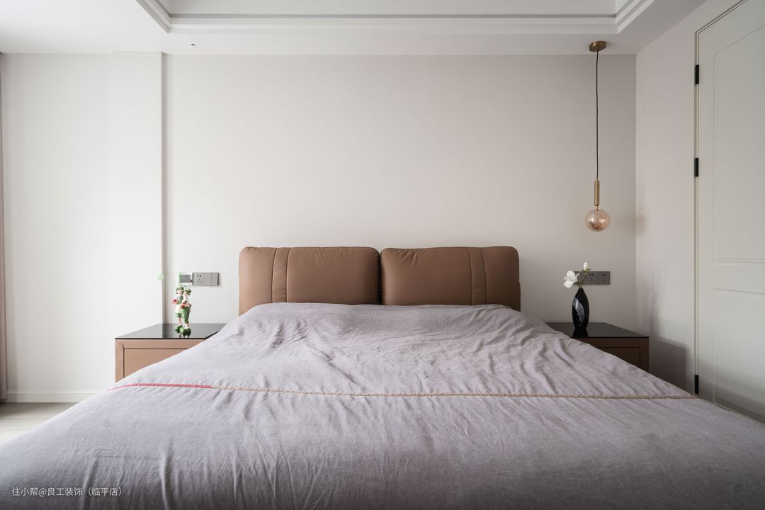 卧室没有任何浮夸的堆砌,灯饰装点都点到为止,整体以舒适实用至上,设计师用轻度设计语言打造出了一个安放身心的自在空间。