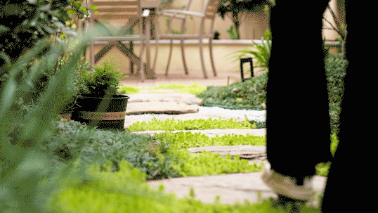 步入庭院,柔软的风,温暖的阳光,花草绿植围绕其中,这一切都是大自然的馈赠,置身其中,心旷神怡,在这里,人、自然与居所静谧独存且优雅共生。