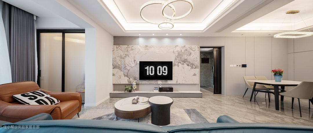 电视背景墙做了经典的悬浮式+地台的设计,白色岩板上墙,简约大气的色彩打造出高端华丽的质感,正所谓简约而不简单。