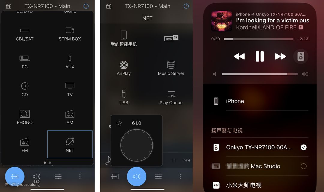 并且安桥TX-NR7100是有Hi-Res金标认证的,躺在沙发上用手机选择音乐模式,然后通过airpay投到家庭影院里播放,可以说是相当好的欣赏体验。