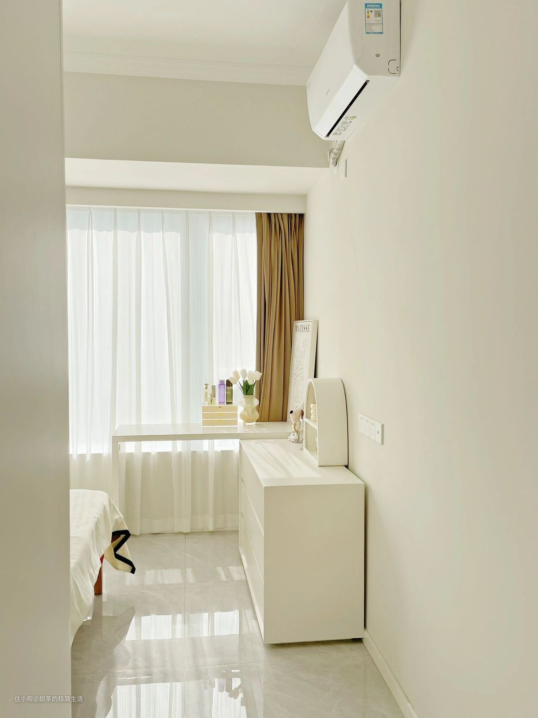 在细节的设计上,屋主连路由器都选择了白色系,呼应装修主色调。