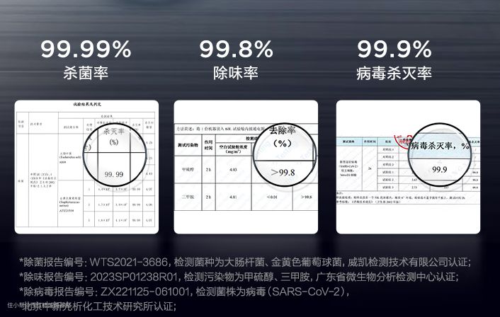 根据官方出示的检测报告,这款TCL超薄零嵌冰箱T9杀菌率高达 99.99%,除味率为 99.8%,病毒杀灭率为 99.9%,满足家用需求绰绰有余 ▲