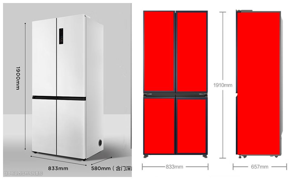 左:TCL超薄零嵌冰箱T9;右:其它品牌超薄冰箱