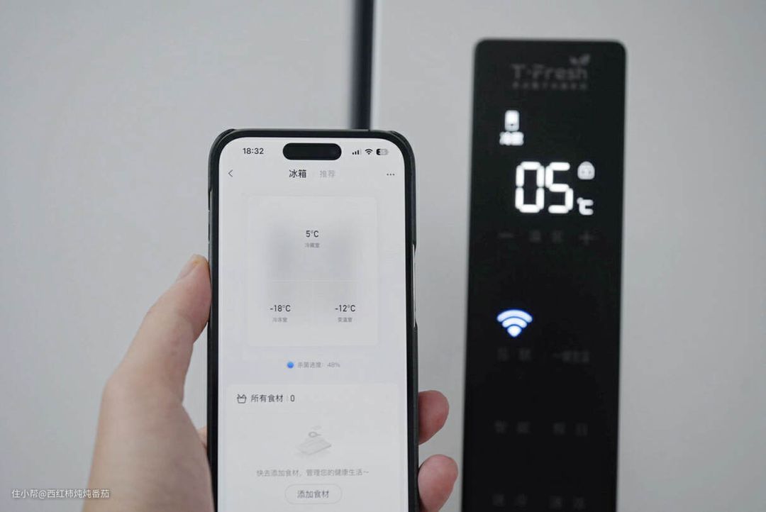 温度设置也很方便,可以通过冰箱门板上的触控屏实现,也可以通过更简单的 APP远程操控完成 ▲