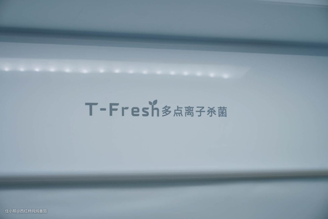 这台TCL超薄零嵌冰箱T9在冷藏室设置了 T-Fresh多点离子杀菌装置 ▲