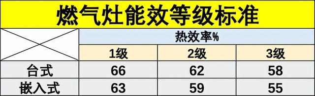 燃气灶,分为台上式和嵌入式,能效等级标准如下▽