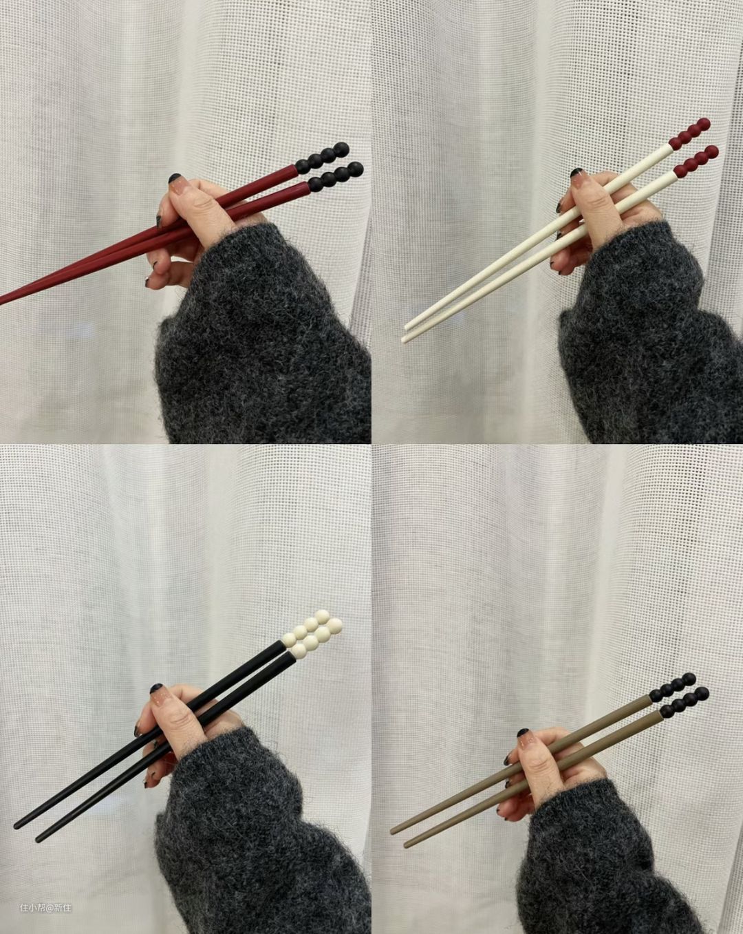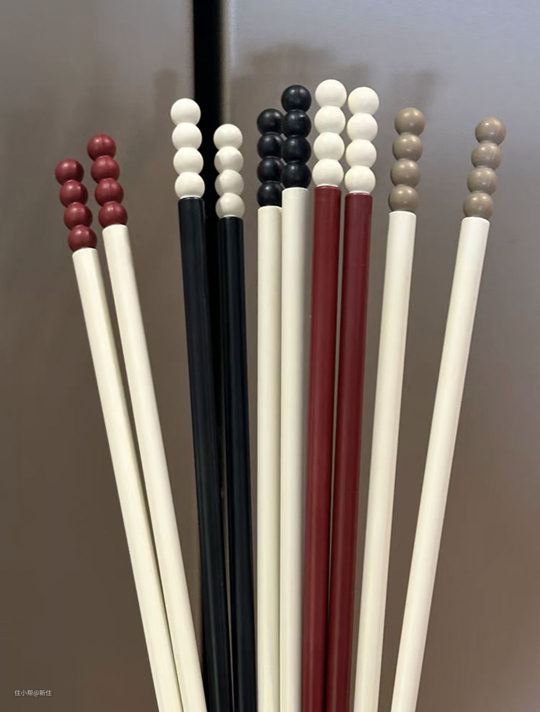 然后,筷身和珠子做拼色,增加少色多辨识度,哪怕是家里人口较多,也不用太多太复杂的颜色就能区分。