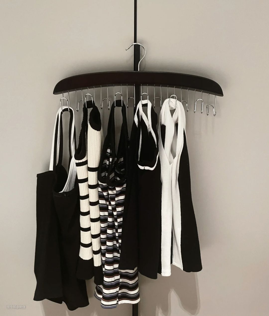 不知道大家的吊带是怎么收纳的,反之在我媳妇拥有吊带衣架之前,可是苦恼抱怨了好一阵,光我帮她捡吊带的时间都数不清。