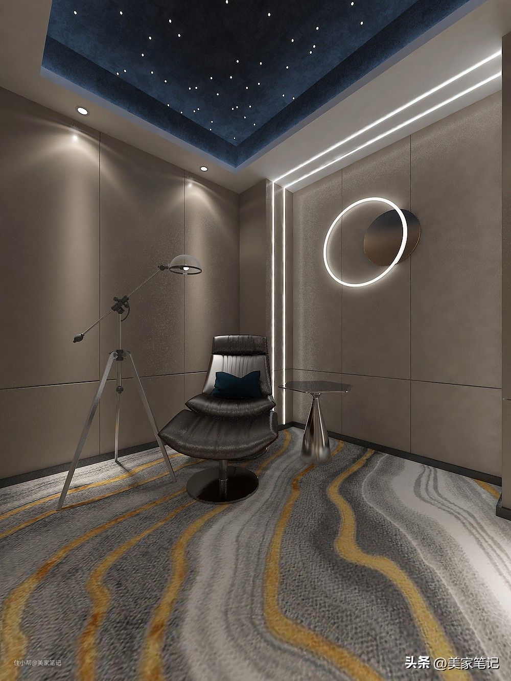 音乐室想必是屋主最为注重的私密空间,从这全屋隔音装饰,以及那星空顶的设计,足以看出屋主对于音乐的痴迷与执着。