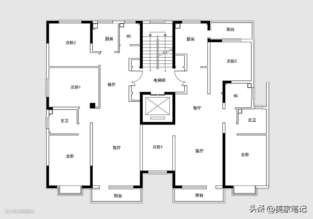 一梯两户的结构,虽然格局比较方正,但在采光方面确实不太好,且行动路径也是比较尴尬的。据设计师诉述,屋主拥有着两套房产,当时购买就是因为连在一起,想着打通后变为一套大平层,下面就看看设计如何改造。