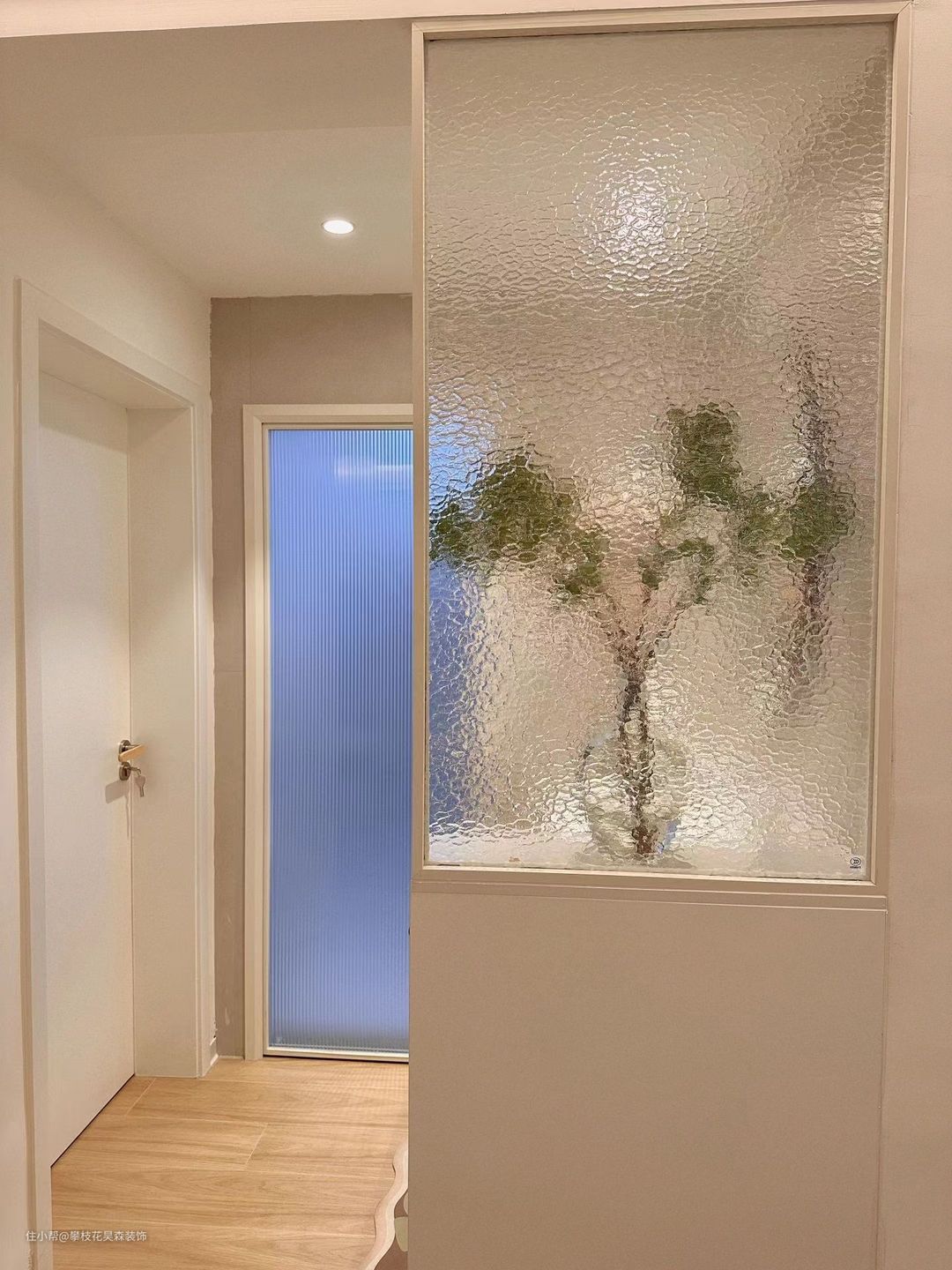 抽拉柜上做玻璃隔断,摆上绿植,像一副油画,客人来家不会一眼望去杂乱,反而像背景画。