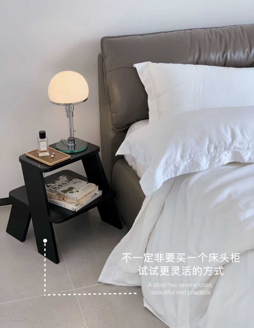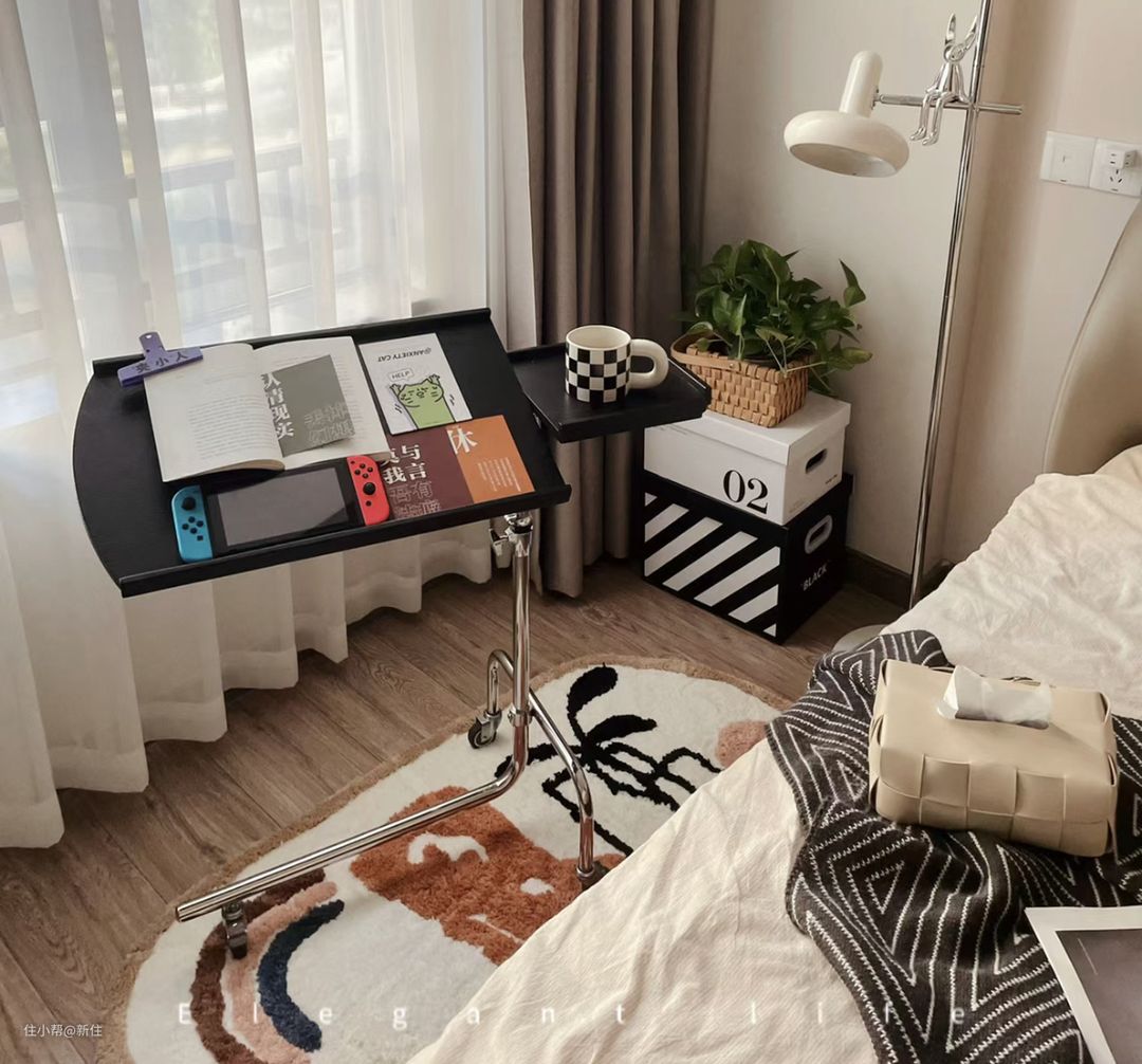 而这些方案,也都能应用在其它场景,能兼顾床头柜功能的同时,用完挪走,卧室也能最大程度保持整洁,还省了买床头柜的这笔钱,简直是一举多得。