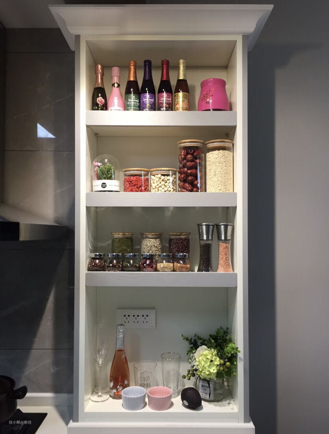开放式橱柜,整齐摆放的餐具,是家的氛围,实则,要得摆放出效果,不仅对餐具的颜值有要求、摆设角度、间距都有考究,而且不想用前再洗一遍,还是收进柜子里比较安心。