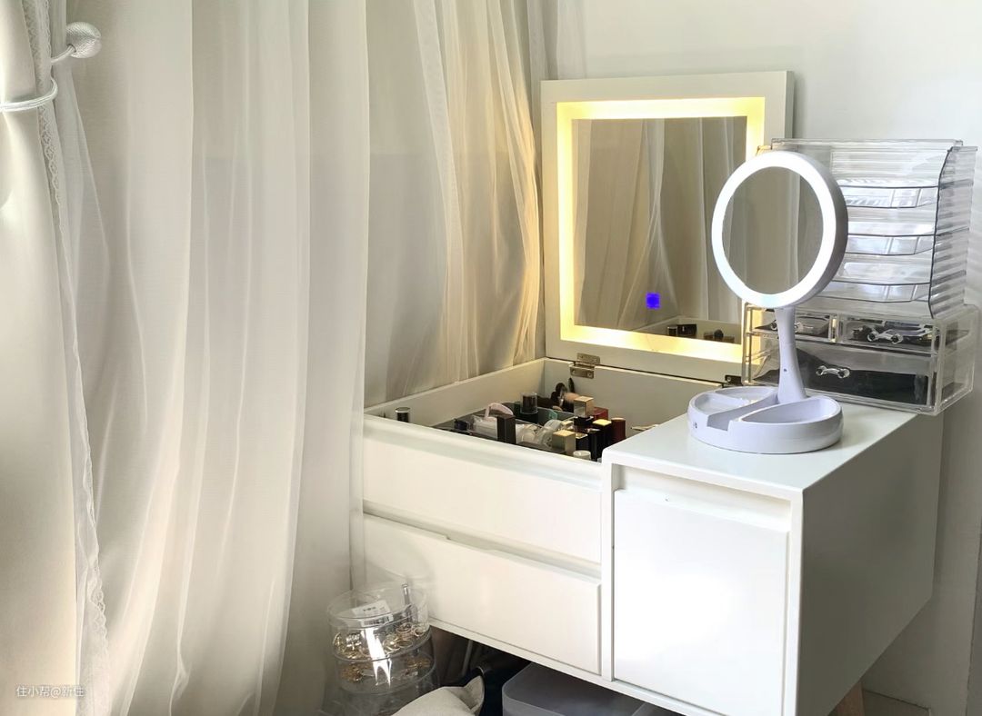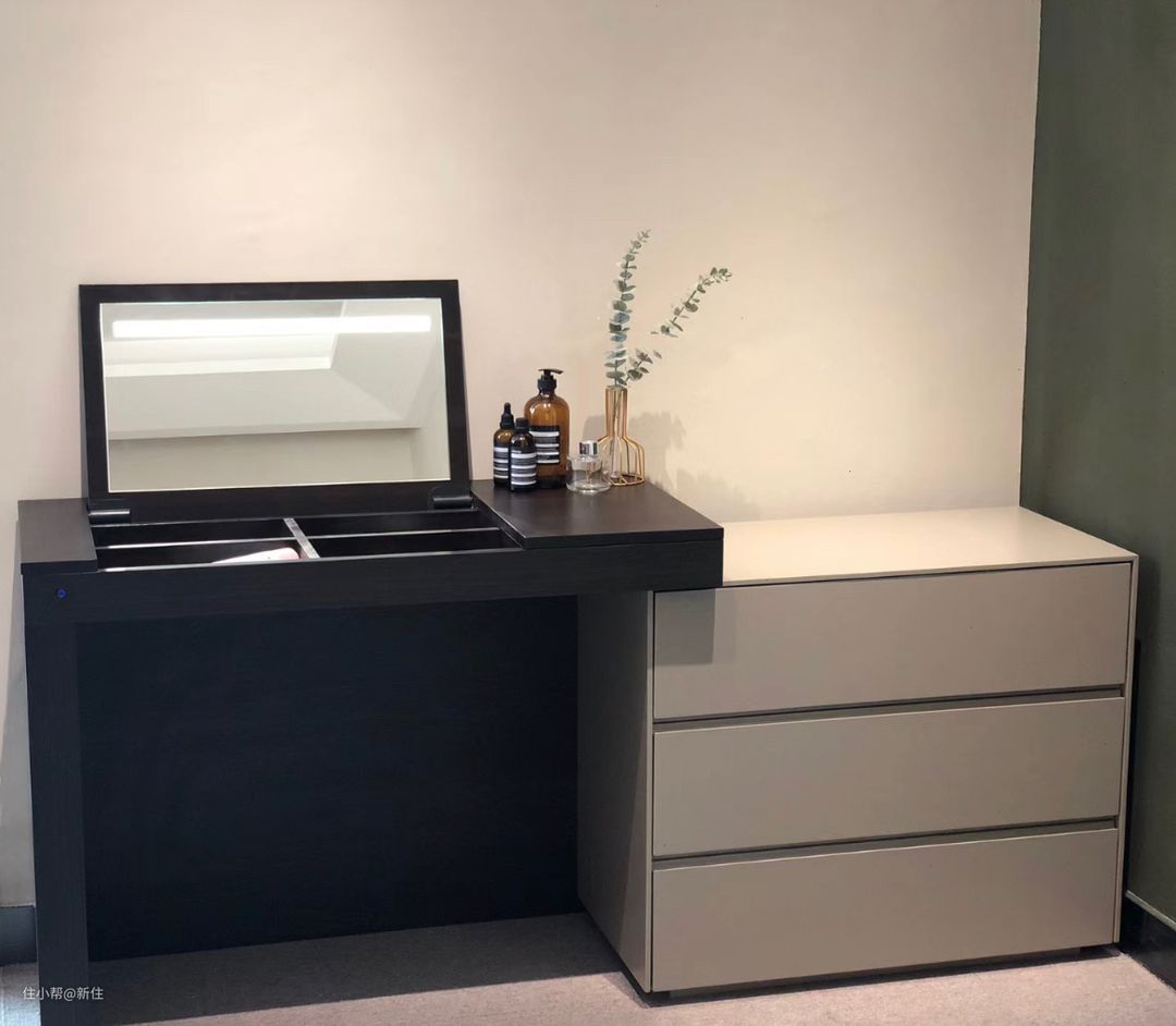 上翻梳妆台,有一个大bug,就是使用时得翻开面板,也就意味着,用的时候需要把台面上的东西挪空。