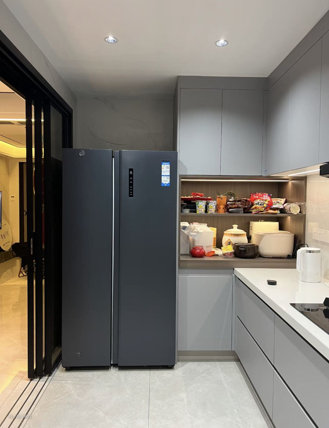 当然买的时候想当然的心态是,台面上我可以不放置东西,但入住后的场景,还真不是什么都能预想到的,即使你不放,家里还有别人,到头来,使用感上一定有落差。