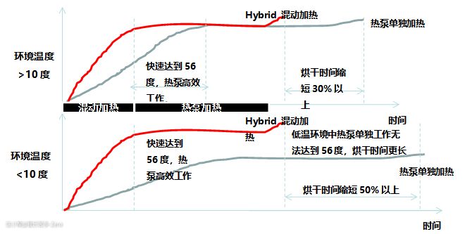 纤美176的Hybrid混动辅热技术,是专门针对这个现象研发的,它可以做到在干衣机启动初期快速提高温度,它的烘干时长、效率并不会收到受界温度的影响,还有省时和省电模式,还能进一步提高烘干效率。