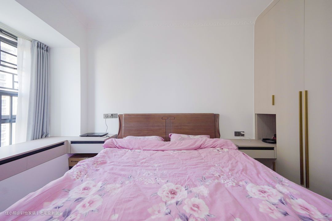 床头双侧皆用了双侧功能区做了定制延伸,代替了传统的床头柜的作用。