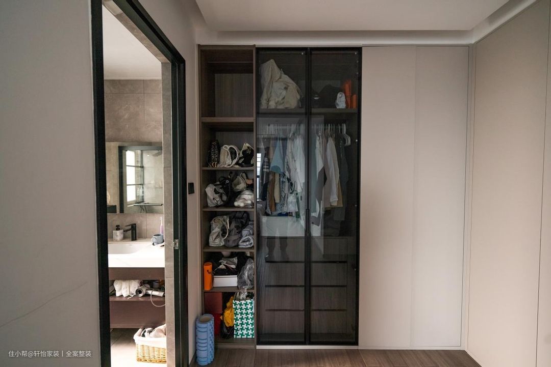 - 卧室做了多功能一体柜,集收纳与展示于一体。