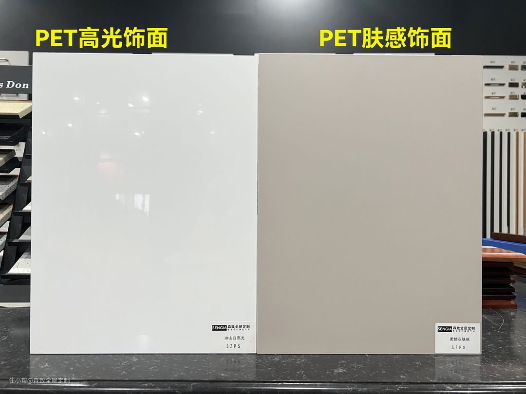2.PET肤感饰面分为高光饰面和肤感饰面