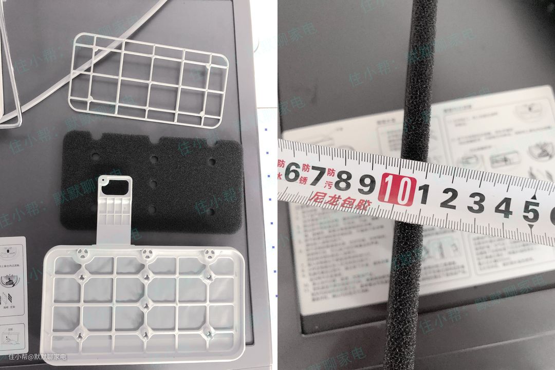 绒毛过滤效果还是很不错的,主要集中在第一层上面,第二层有少量绒毛,第三层就更少了,第四层是一层黑色泡沫网,上边未见有绒毛,这说明前三层就已经完全过滤掉了,完全不用担心绒毛会堵塞蒸发器的问题。