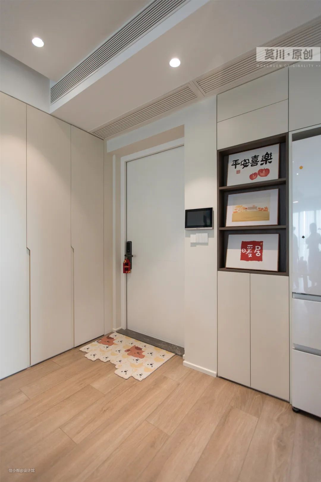 ▲大门玄关另一侧装一排极简定制柜,柜体与空间结合完美,实现了高级唯美的设计效果。