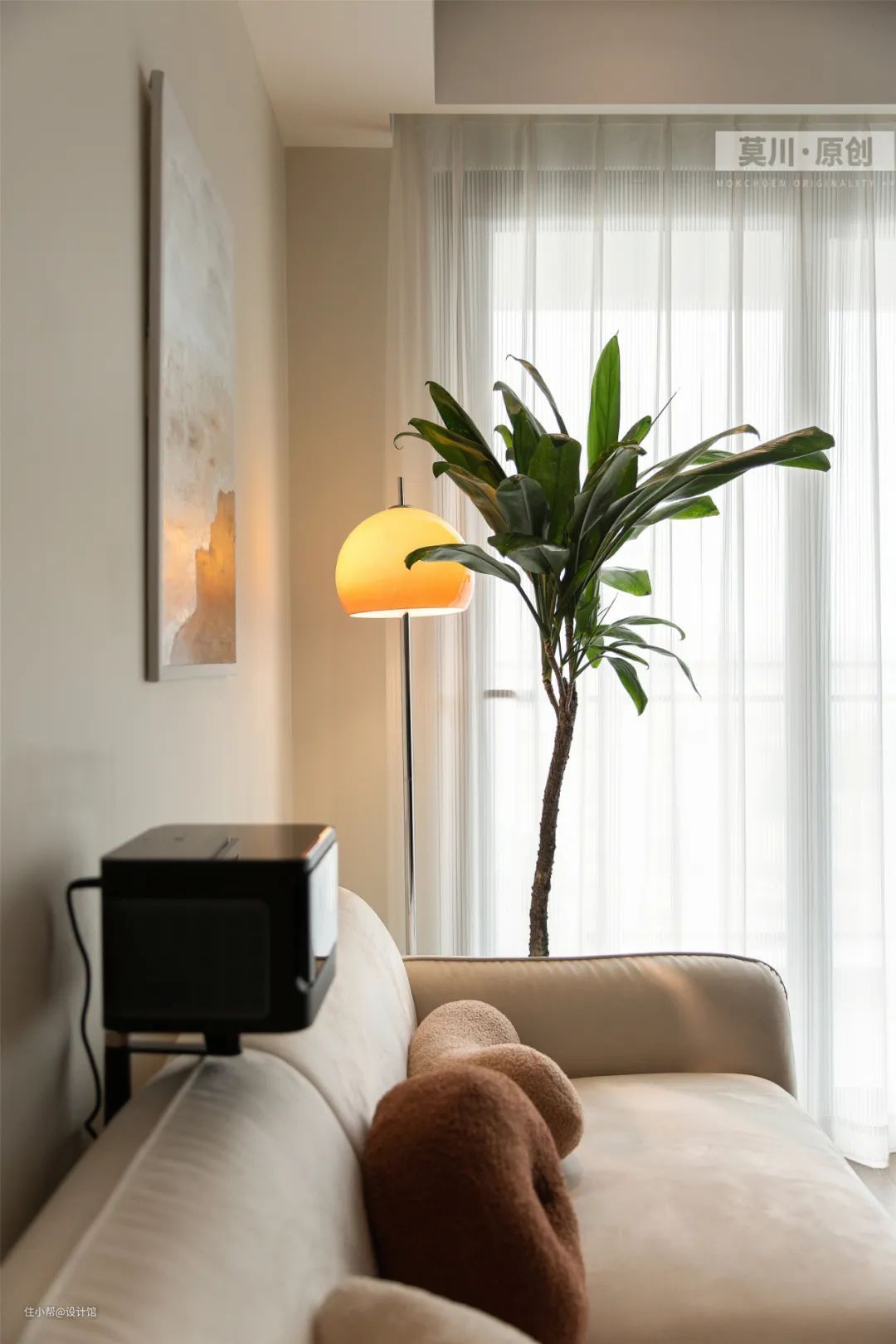 ▲沙发靠窗位置摆置落地灯与绿植,也让空间更加清新文艺而格调气质。