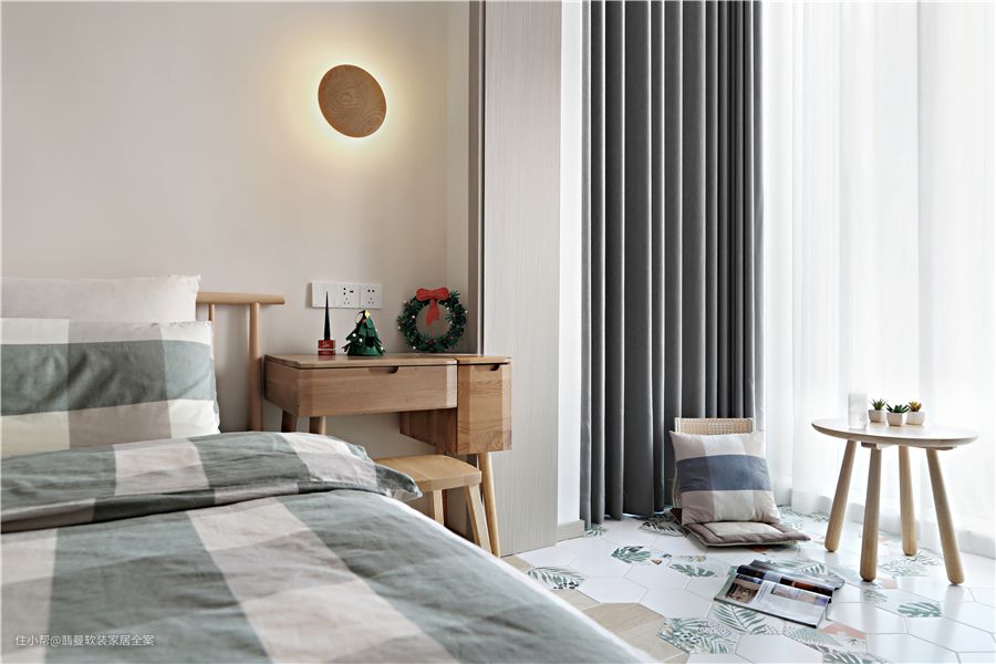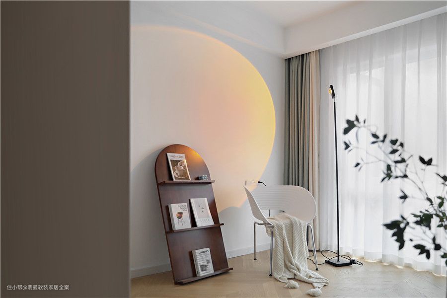 同样,也可以利用卧室一角设计成一个小书房,而且相对于客餐厅来讲要封闭、私人的多,有更适合学习思考的安静氛围。还有一点好处就是由于在卧室里面紧靠床铺,累了就直接躺下休息会儿,“摸鱼”更方便哦~