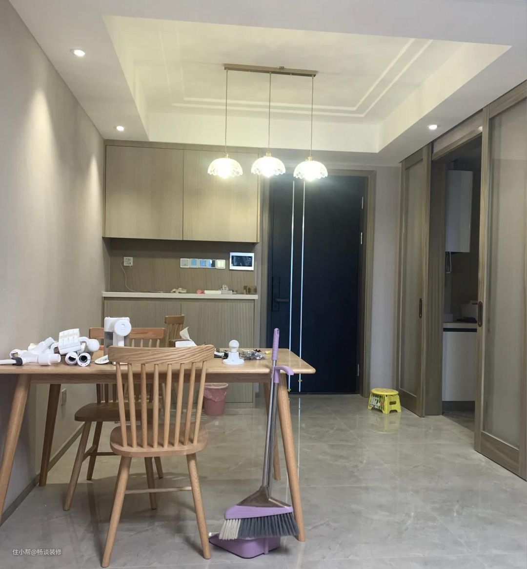这样的设计在餐桌还没有搬进来前,看着好像没有什么问题。