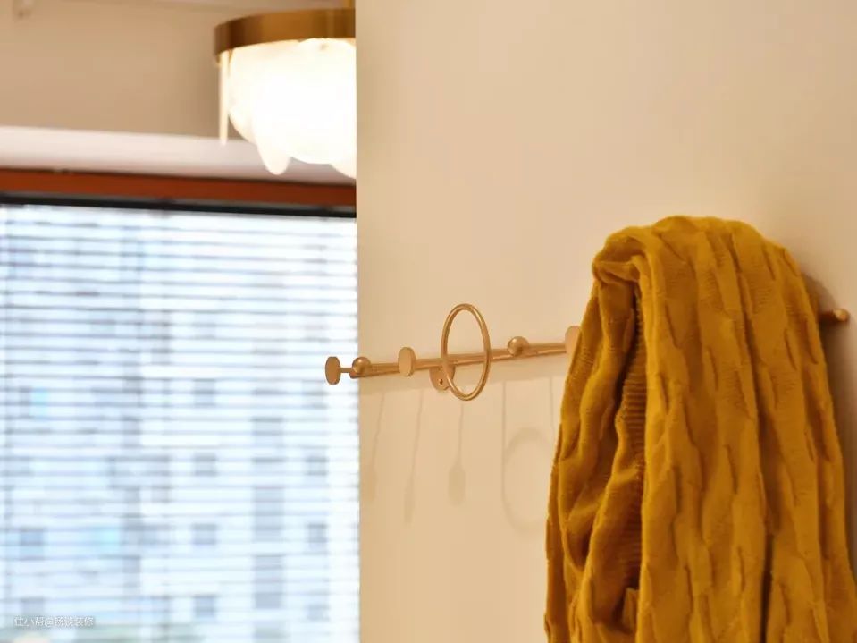 对于这个“次净衣区”来说,最佳的位置就是在卧室衣柜的侧面做出一个挂衣区,既有隐私性,又完美解决了侧立板的不美观性,还增加了收纳空间,属于“一举多得”的好设计。