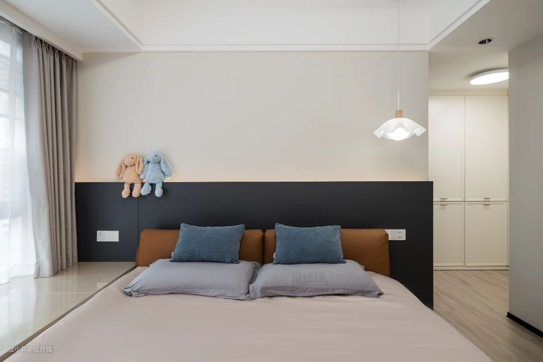 另外在床头靠背、凹吊顶等情况,也可以装入灯带作为辅助照明;而床头区域则可以加入台灯、吊灯等床头灯。