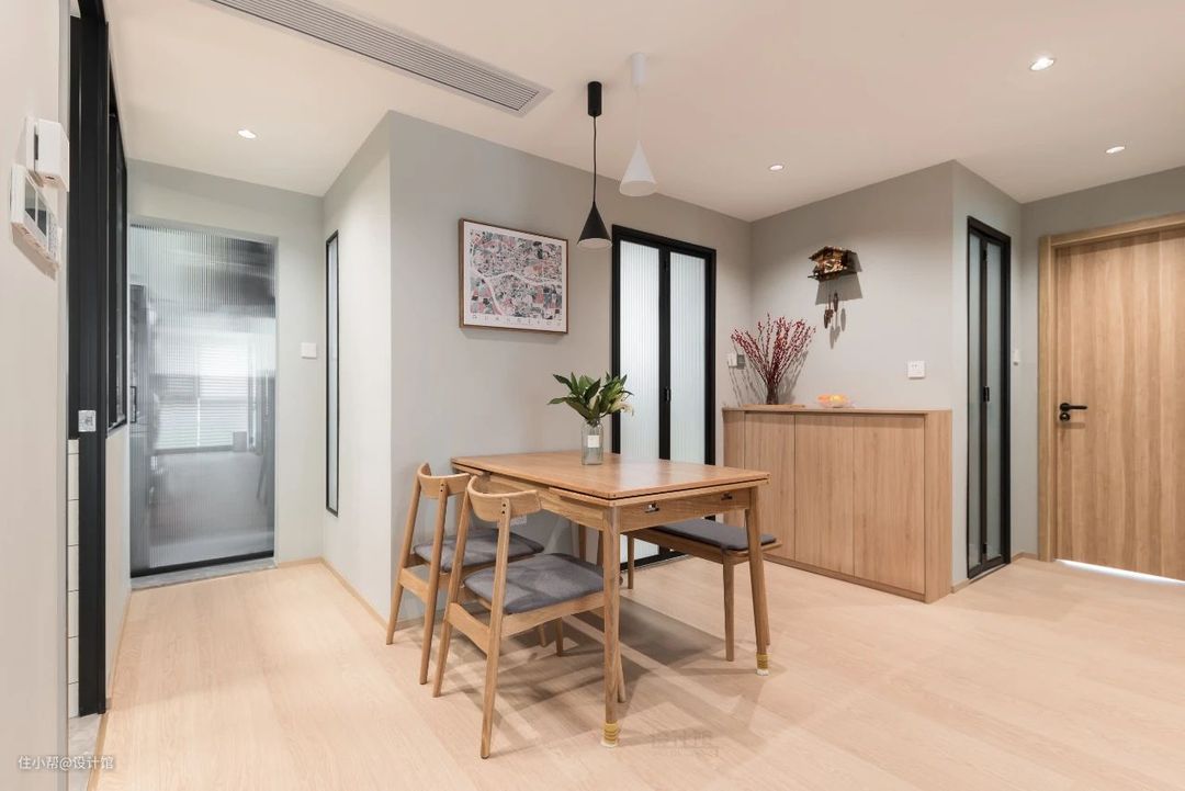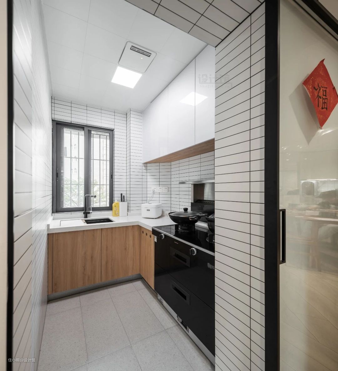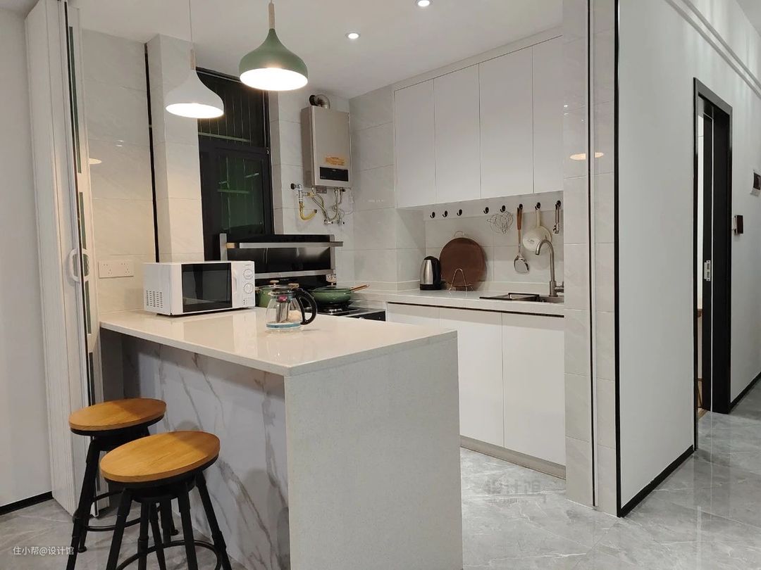 如果是开放式厨房,天花与客餐厅一致的话,则是可以采取筒灯设计,让天花保持更加统一大气的效果;