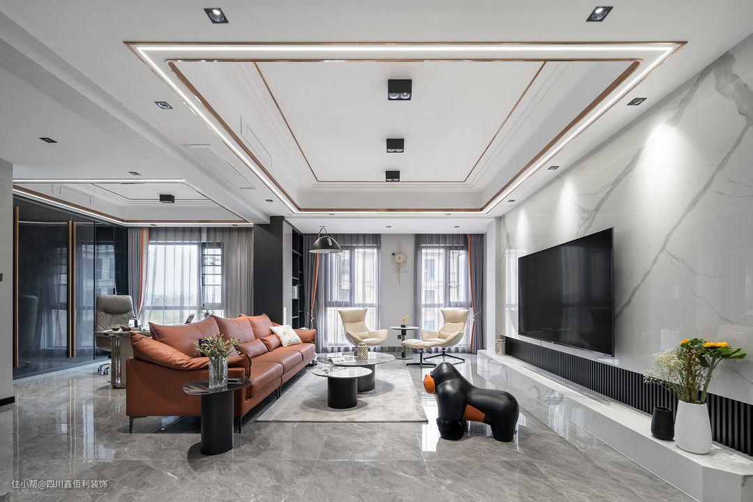 关于现代轻奢风的颜色,业主可以根据喜好选择,就像人的性格一样,色彩鲜明。设计师据此进行色彩搭配,高级的中性色,像黑白灰、奶油咖啡色、时尚优雅原木色等等,再辅助以深浅不一的跳跃和对比色,将家居中的品味和格调打造。