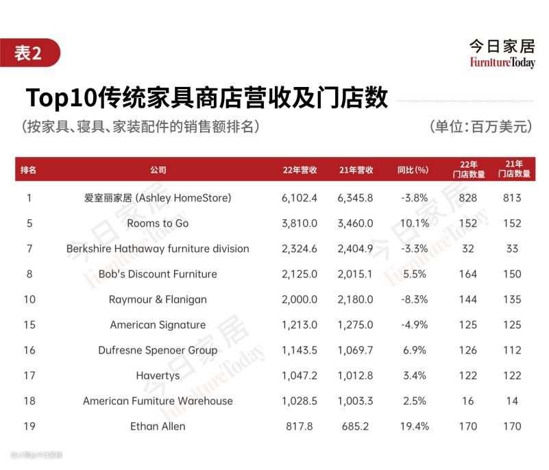 2023全美家具店TOP100(上):近一半销量下滑!