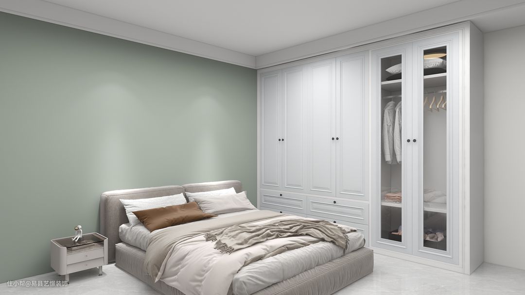 属于带点灰调的绿色,适合客餐厅和卧室背景墙。