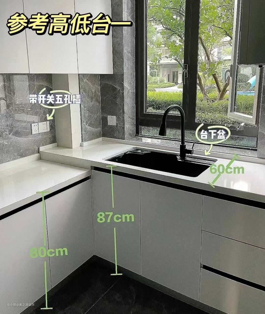 高低台面设计后,洗碗切菜都不用弯腰