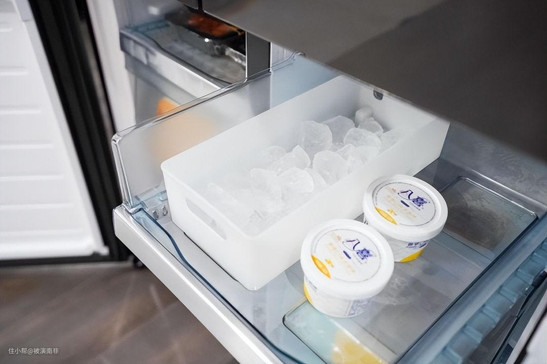 这台冰箱另一个让我满意的点就是自动制冰功能,只要给冰箱的给水盒倒入水,就能自动制作成冰块,冰块大小适中,拿取方便。炎热的夏天,坐在空调房来一杯冰镇饮料,那爽快的感觉真的可以让我忘却身边的烦恼。更厉害的是这台冰箱提供了快速制冰和急速冷藏功能,如果没有提前准备好又想喝上冰爽的啤酒饮料,那它确实可以帮大忙!
