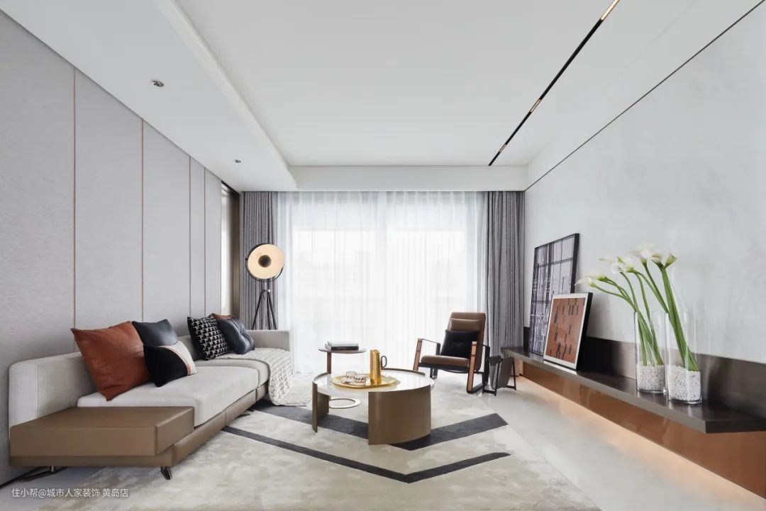 整体以白色调铺陈空间想象,简约的线条搭配圆弧形的细节点缀,疏而不空,满而不溢,以恰到好处的分寸感和尺寸感,打造时尚而精致的起居空间。