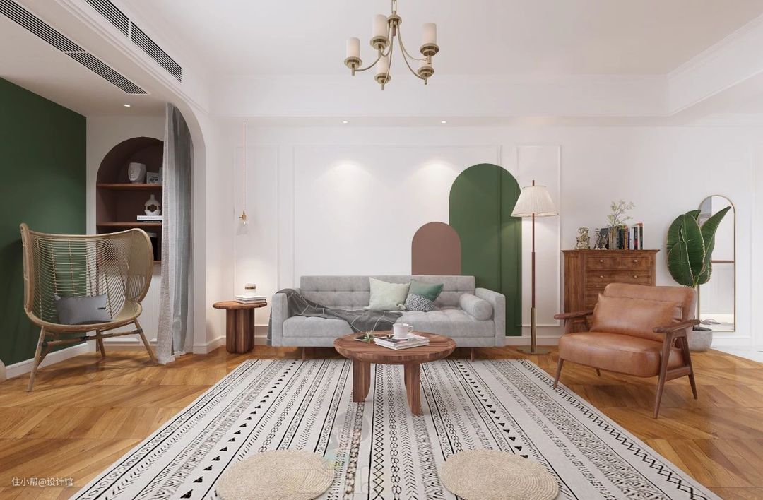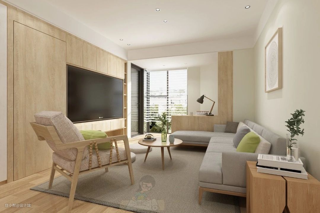 在北欧、简约、日式等原木风的装修中,浅木色是非常受欢迎的设计元素,它可以用在家具(如沙发、茶几、电视柜、餐桌椅、床、柜体等位置),也可以用在硬装(墙面、局部天花、木地板、房门、踢脚线等地方),通过浅木色打造的原木风空间,能给人一种返璞归真的的简约自然氛围。