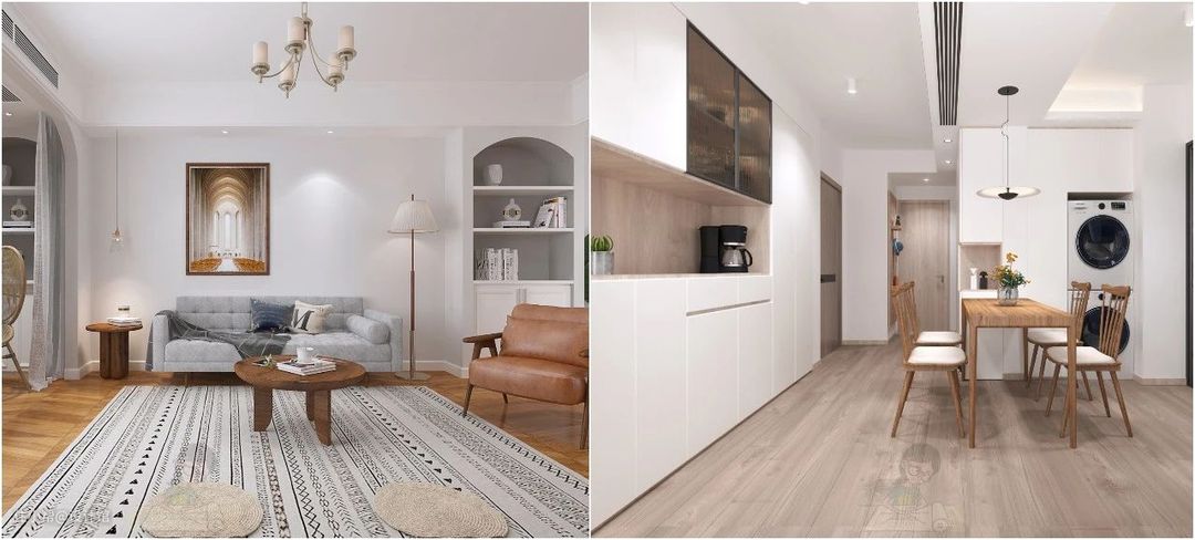 当然白色也不是单调的颜色,根据色调可以分为纯白、奶白、米白等等,不同色调的白色,再搭配上不同的软装配色,可以营造出不同的空间氛围。