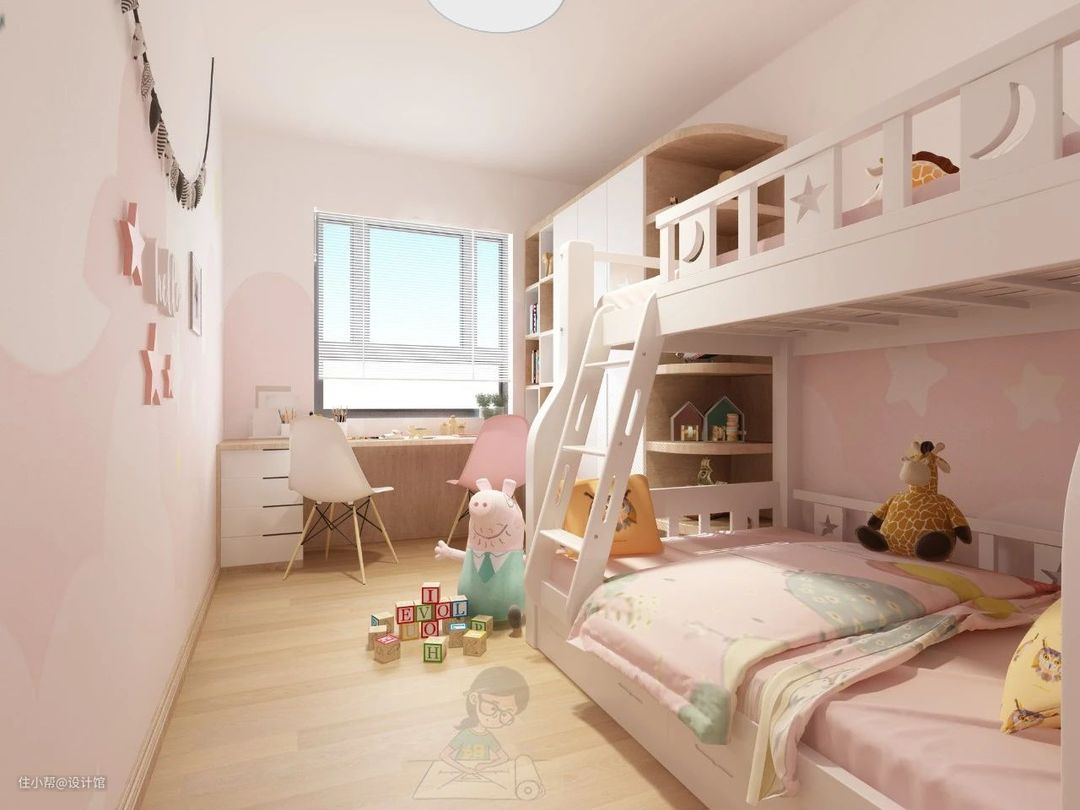 淡粉色适合女生、儿童房的空间,局限性较强,但对于少女而言,淡粉色象征着对梦幻、浪漫的憧憬,把她们的房间墙面、床单、蚊帐等元素布置出淡粉色的,能够满足她们对浪漫温馨的空间追求。