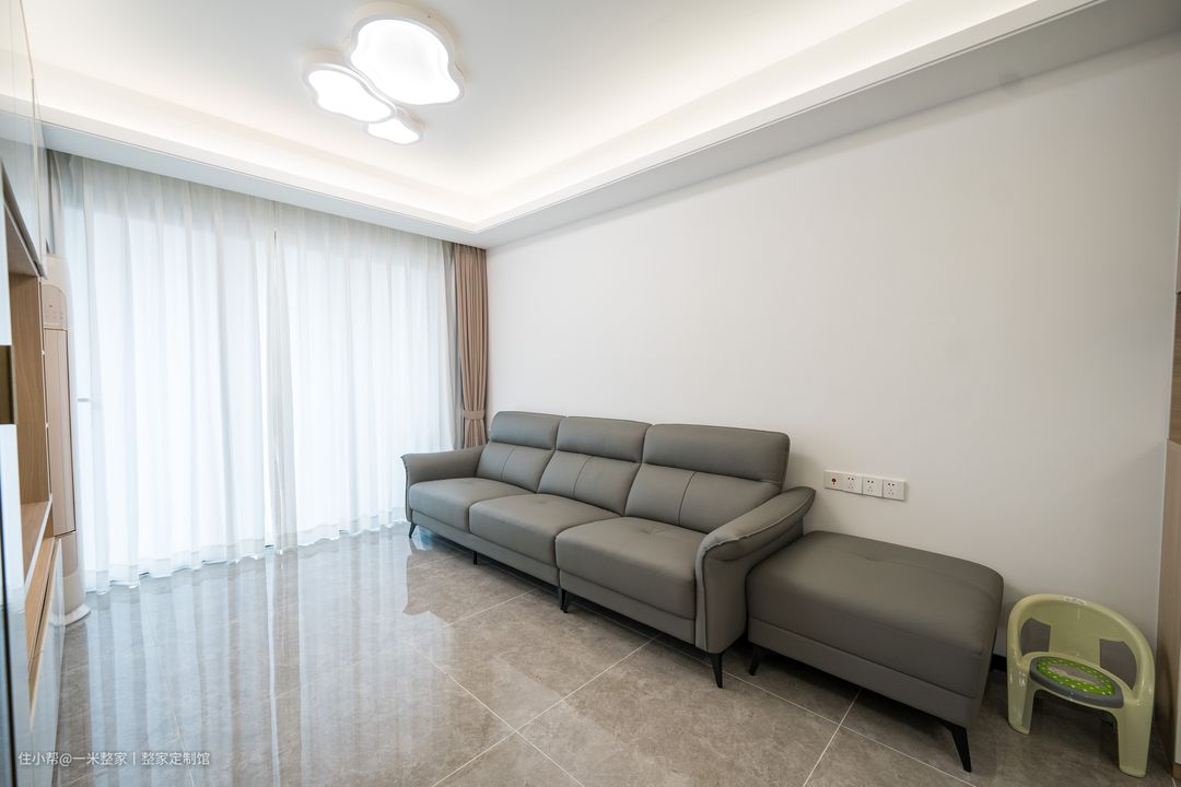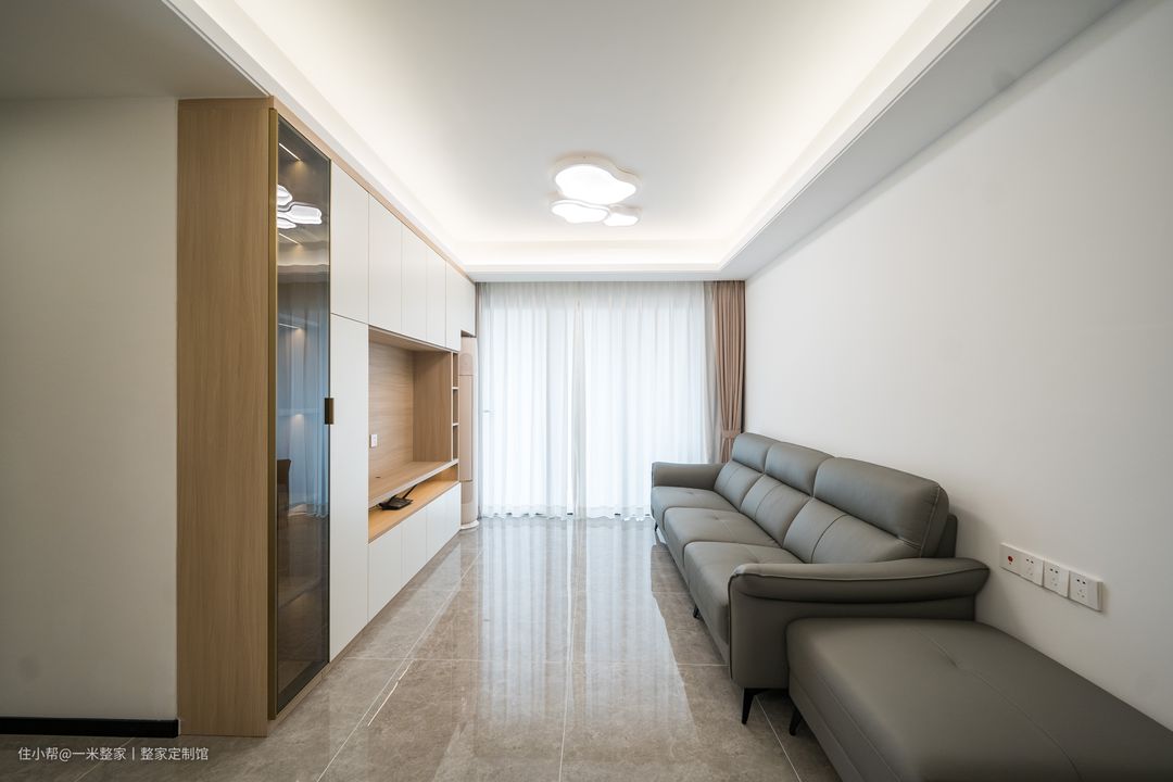 放眼望去,回型吊顶加主灯设计,简约耐看不容易过时,视觉上拉高层高,空间更加开阔。全屋大白墙,白色折射光源,显得空间更通透明亮。