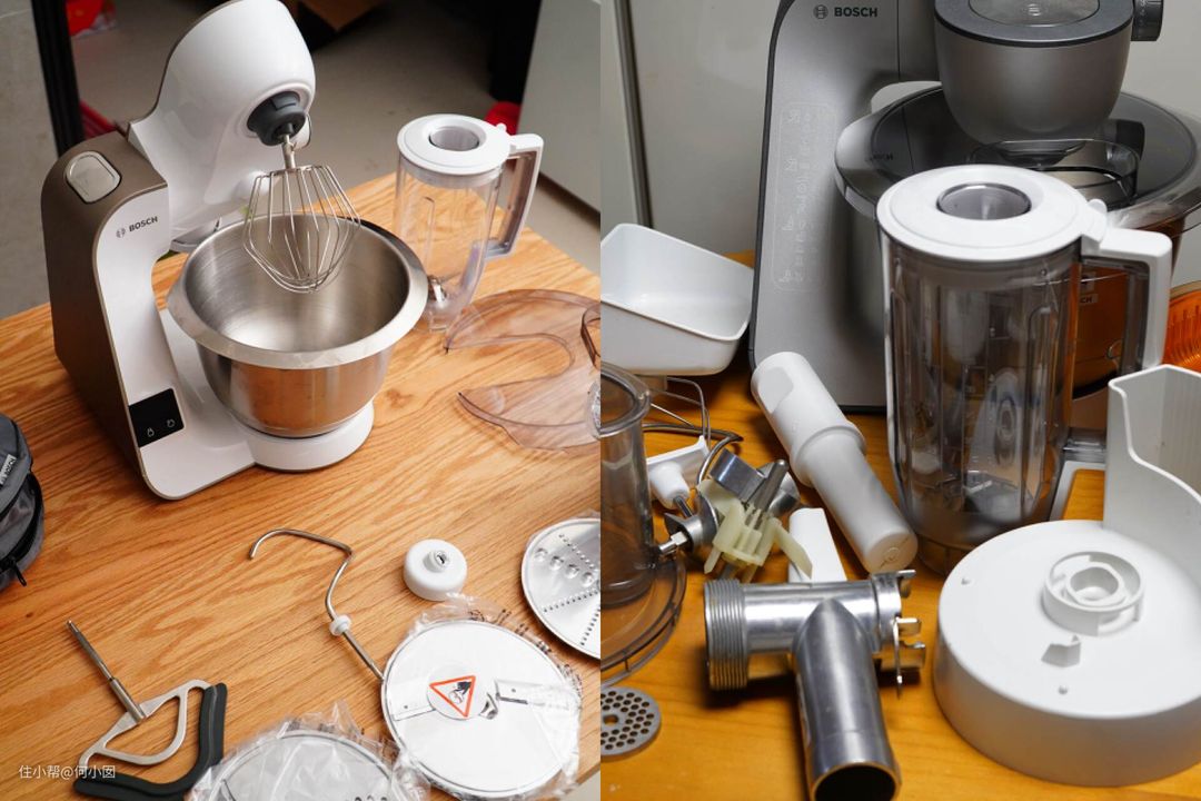 博世的配件非常丰富,它有高中低三速外接口,买套装的,能得到它家几乎所有的配件,涵盖了切丝切片绞肉榨汁灌肠等所有功能