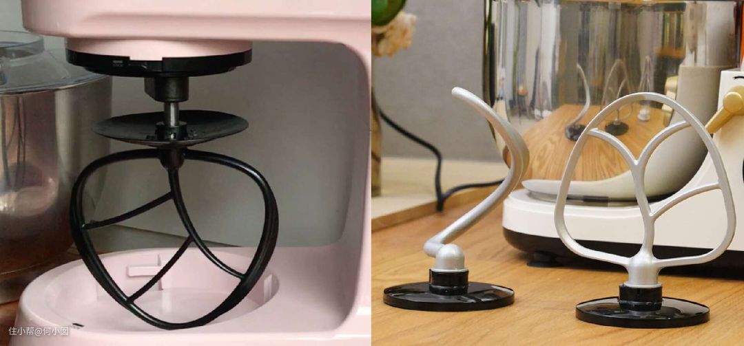 注意下搅拌盆底座,不要选右边这种坑坑洼洼的卡位,很容易割手的款式,最好选左边这种圆滑的,不割台面,不割手,卡位也很方便,别问我怎么知道的,我被割手也不是一两次
